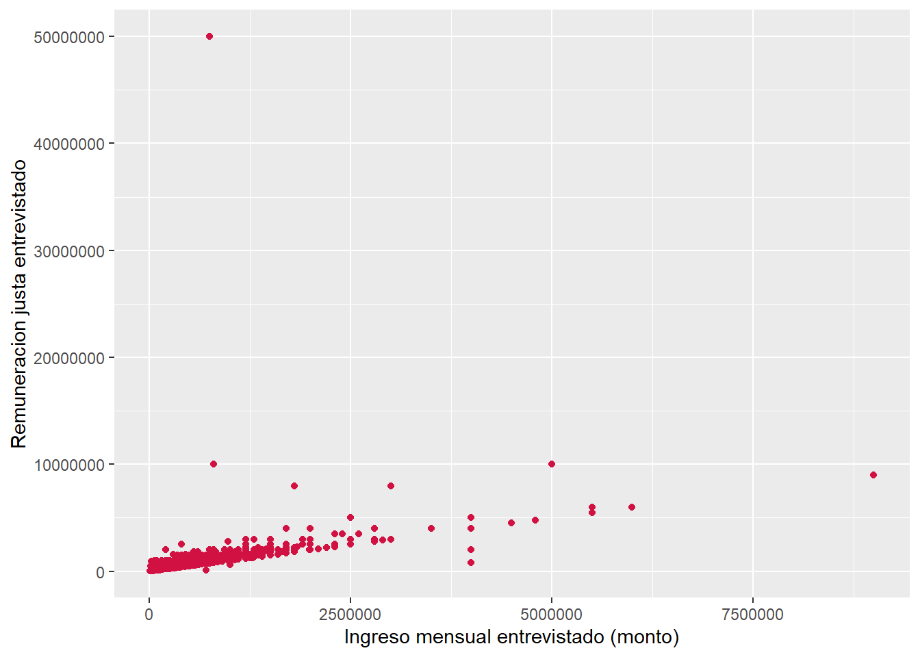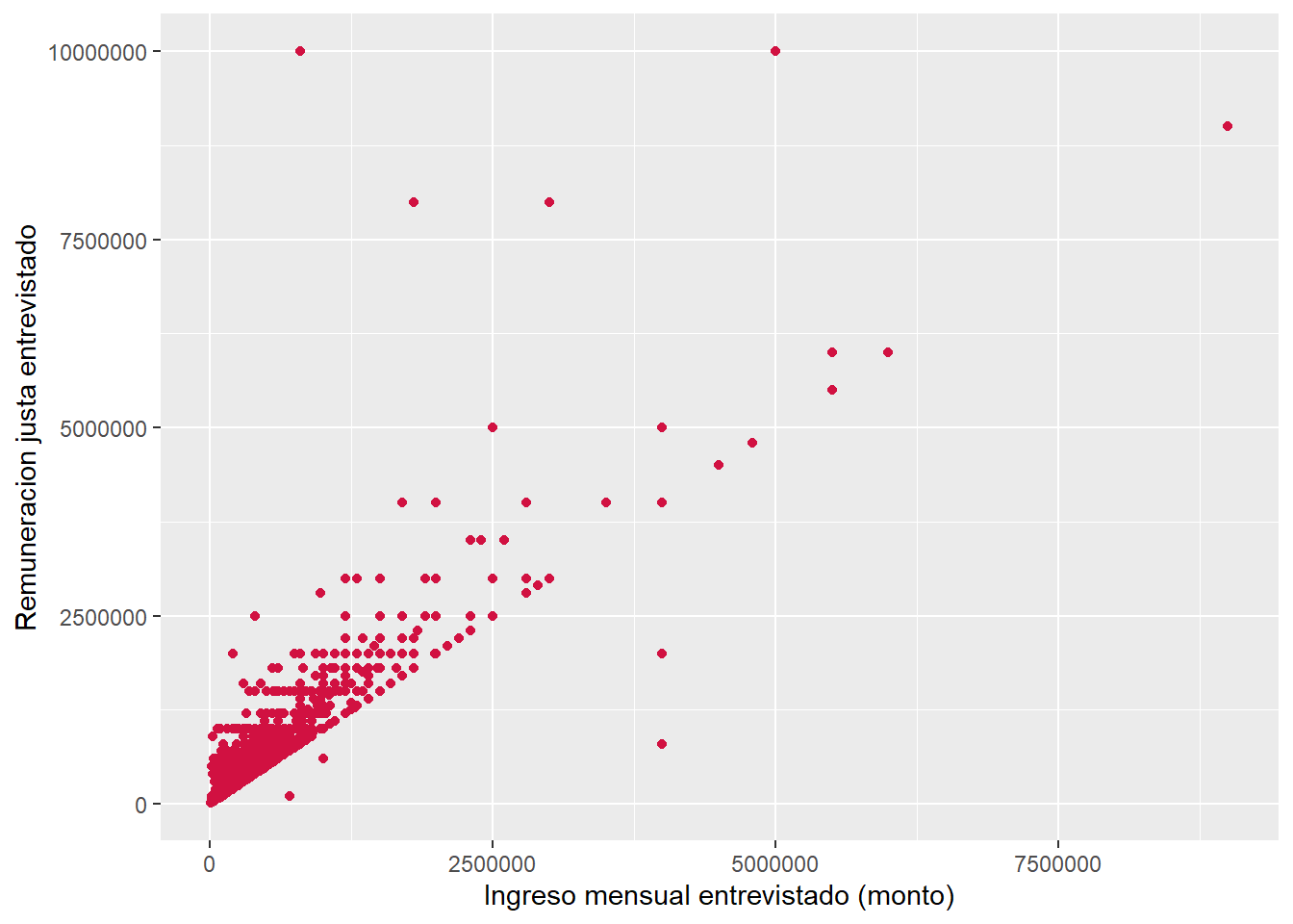 En nuestro ejemplo anterior entre los ingresos reales y los ingresos justos, teníamos que su coeficiente de correlación era