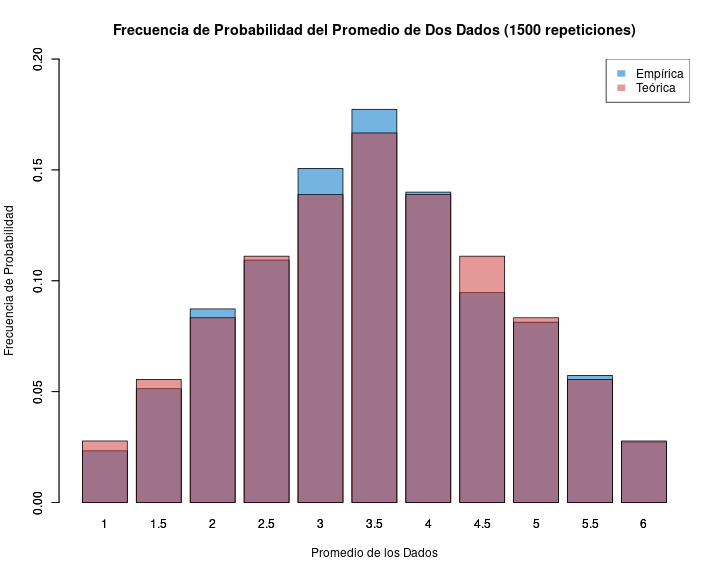 la ocurrencia de algunos eventos (como la suma o promedio de dos dados) tienen una probabilidad determinada, lo que genera una distribución teórica de probabilidad