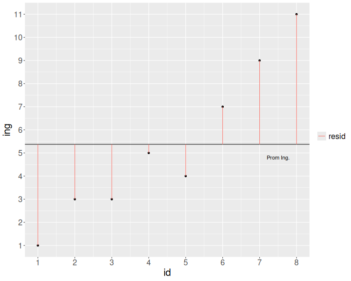 Para poder obtener los residuos vamos a generar una recta que represente la asociación entre las variables. Esta es la recta de regresión 1