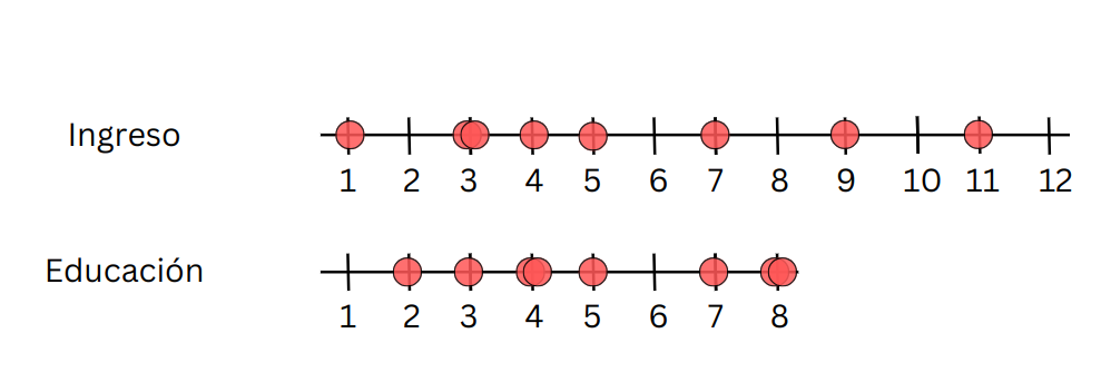 ¿Cuánto de los ingresos se asocia a educación, y viceversa?
